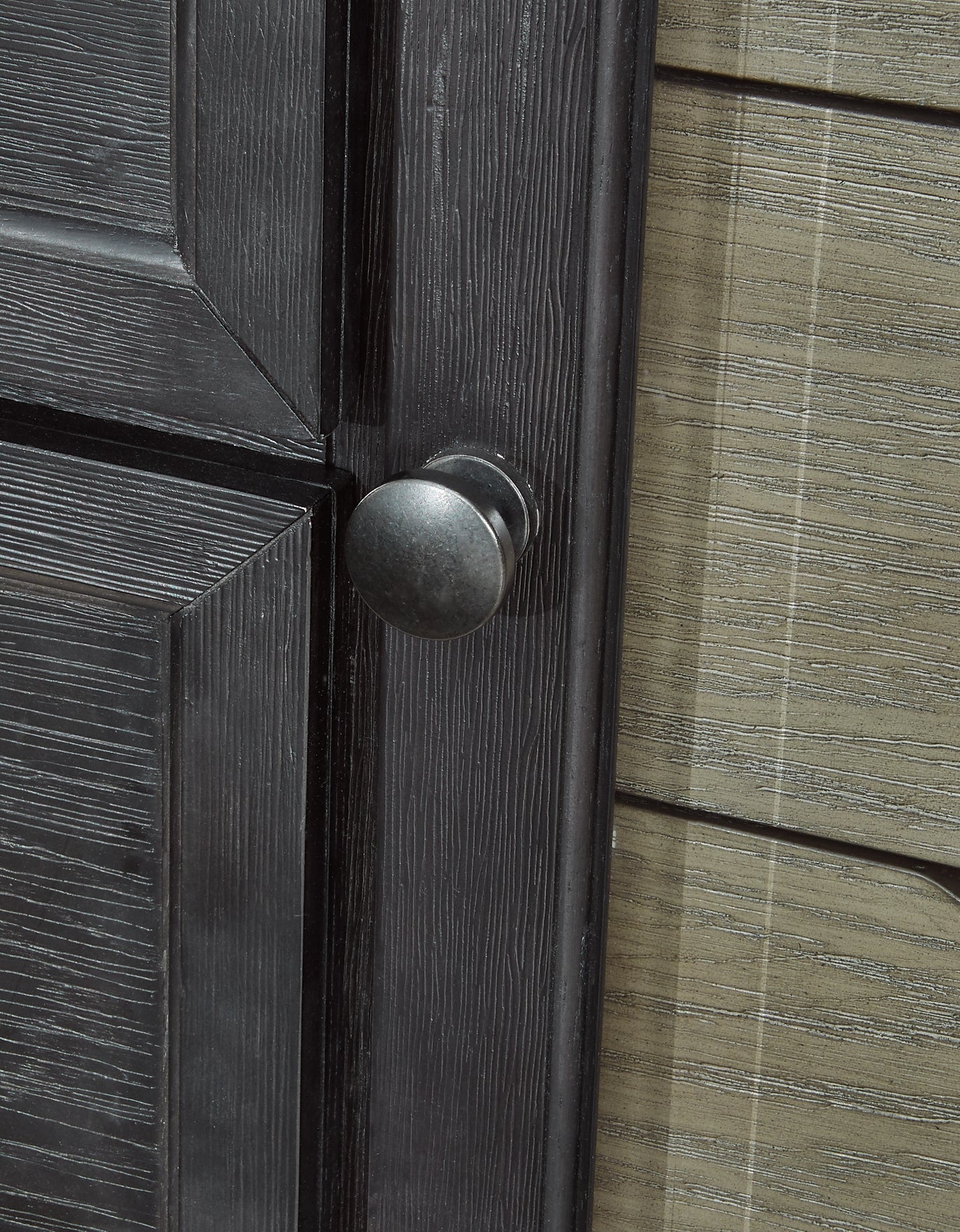 | Details | B989B4: Includes king panel headboard, storage footboard and rails with roll slats, Made with hardwood solids, select oak veneers and engineered wood, Two-tone finish (brushed black and dusty grayish brown wood tone), Headboard with picture frame moulding, Footboard with two deep drawers, Smooth-gliding soft-close drawers with fully finished interiors and dovetail construction, Sleek drawer pulls with black finish, Bed does not require additional foundation/box spring; accommodates most zero clearance adjustable bases with the addition of a bunkie board, Mattress available, sold separately, Assembly required, B989B1: Includes dresser and mirror, Made with hardwood solids, select oak veneers and engineered wood, Two-tone finish (brushed black and dusty grayish brown wood tone), Sleek drawer pulls with black finish, 11 soft-close, smooth-gliding drawers with fully finished interiors and dovetail construction (top drawers felt lined), 5 drawers with brushed black finish; 6 drawers with grayish brown wood tone, 3 drawers located behind each door, Mirror mounts to back of dresser, Assembly required, B989-48: Made with hardwood solids, select oak veneers and engineered wood, Two-tone finish (brushed black and dusty grayish brown wood tone), Sleek drawer pulls with black finish, 5 soft-close, smooth-gliding drawers with fully finished interiors and dovetail construction (top drawers felt lined), 3 pull-out trays (felt lined) and 2 adjustable shelves behind door, | |